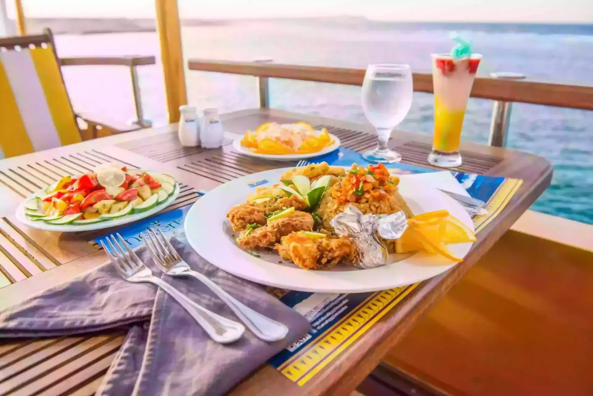 Genießen Sie ein exklusives BBQ-Mittagessen mit Gourmetgerichten und Premium-Getränken, die Ihnen an Bord serviert werden.