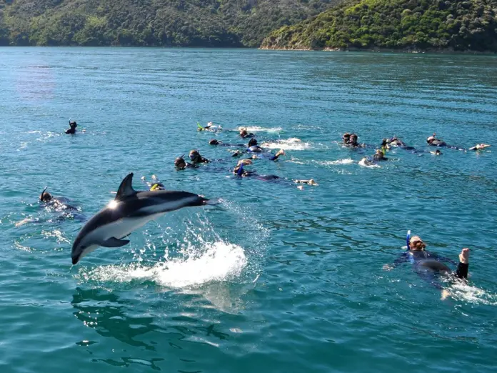 Schwimmen Sie mit den Delfinen in sicheren, flachen Gewässern